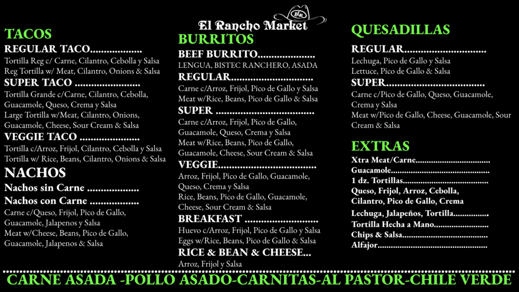 Try our freshly made foods from the Taqueria department. Made daily and served quickly, so you can enjoy your breakfast, lunch or dinner at any time.